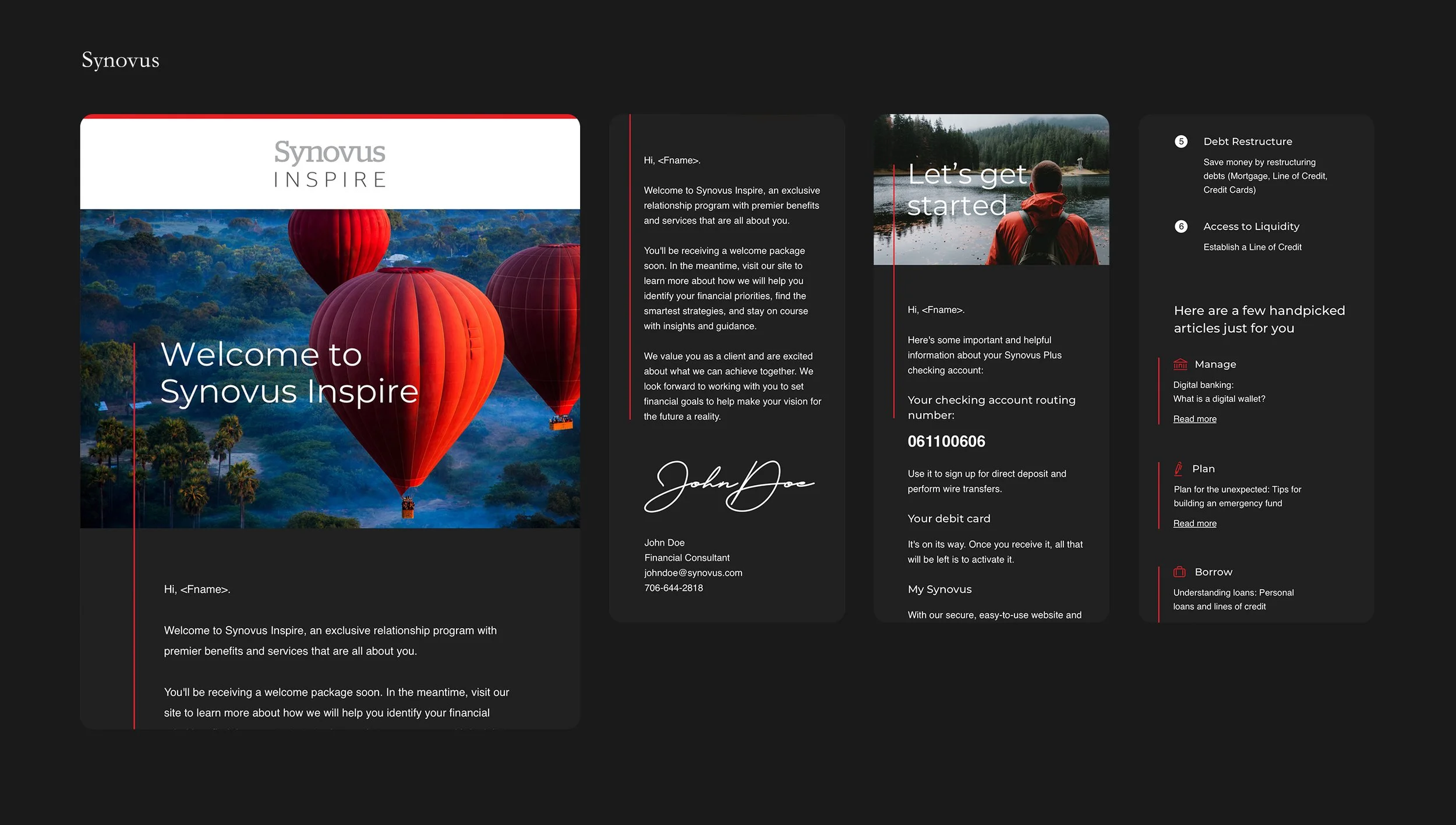 These are a selection of marketing emails I’ve conceptualized, scoped, and designed for a range of clients, including Cracker Barrel, Synovus Bank, and Marcus by Goldman Sachs, among others. My role involved developing strategic design concepts, establishing visual hierarchy, and ensuring each email aligned with brand guidelines while optimizing for user engagement and responsiveness across devices.